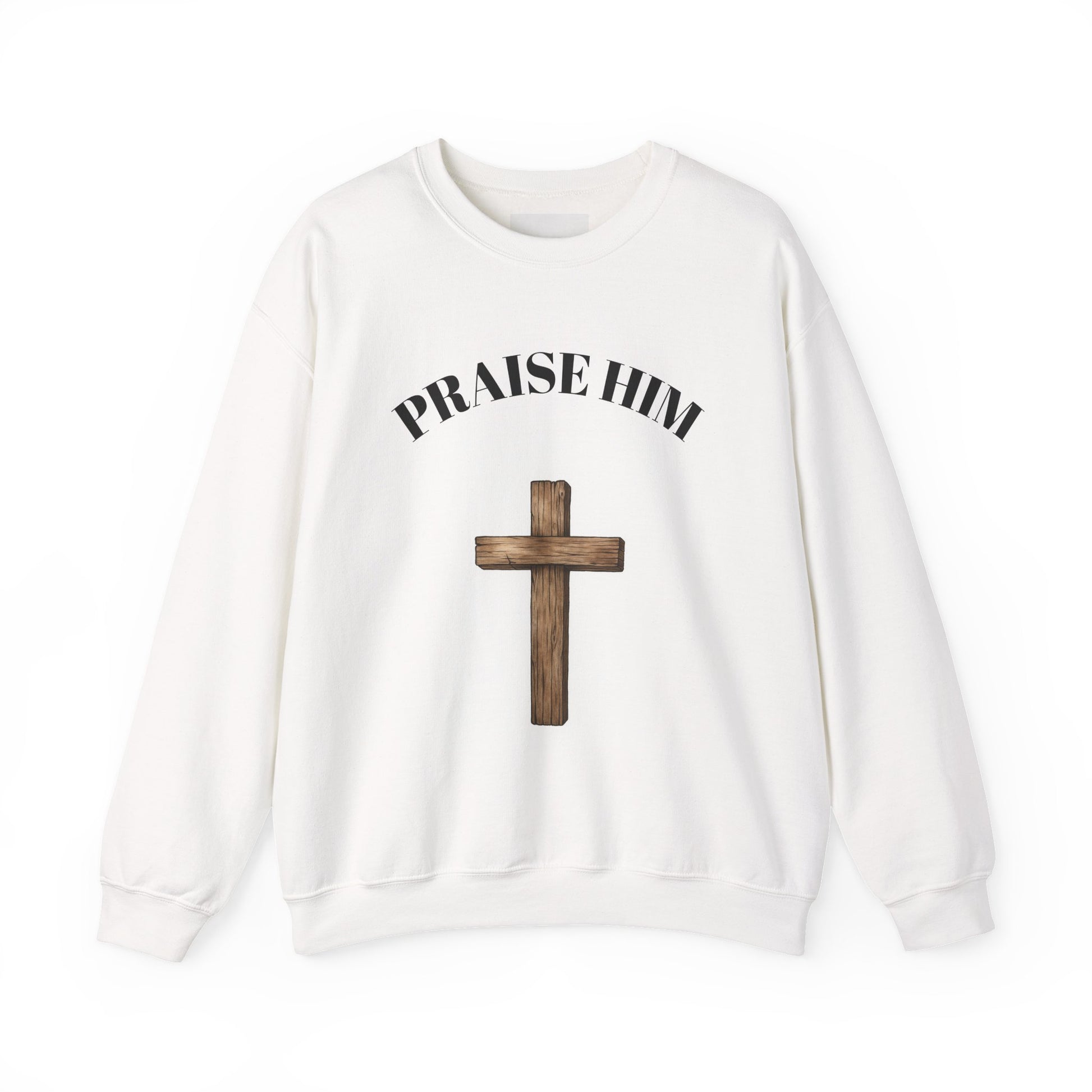 Crewneck Sweatshirt — “Praise Him” Christian Fall Sweatshirt with Inspirational ‘God Says You Are…’ Back Design